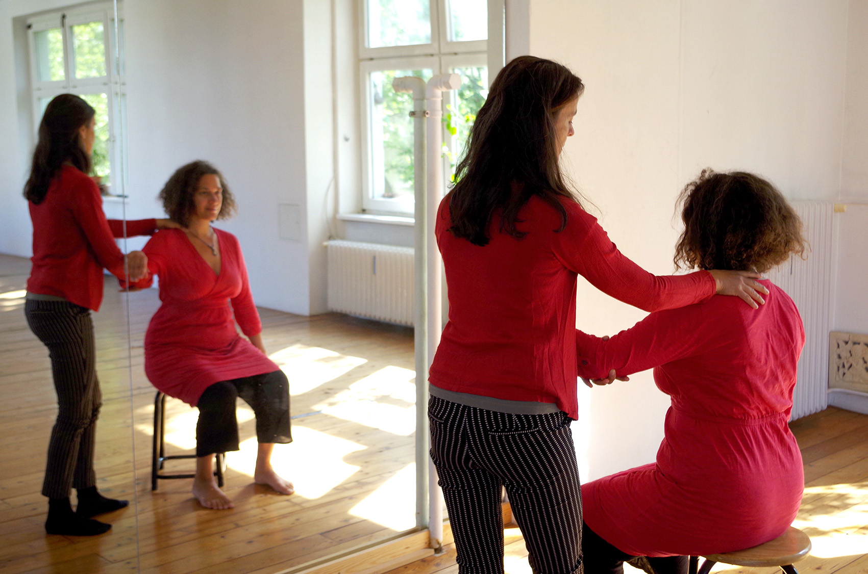 Ein leichter, gezielter Kontakt hilft Ihnen dabei, Bewusstheit in Bereiche des Körpers zu bringen, die vielleicht weniger „präsent“ sind, oder andere zu beruhigen, die überlastet sind. Dadurch entsteht eine räumliche Klarheit im Körper, sowie im Verhältnis zum tragenden Boden und zum Raum. Der Kontakt wird als Mittel der Kommunikation eingesetzt, an der Sie von Anfang an aktiv einbezogen sind.